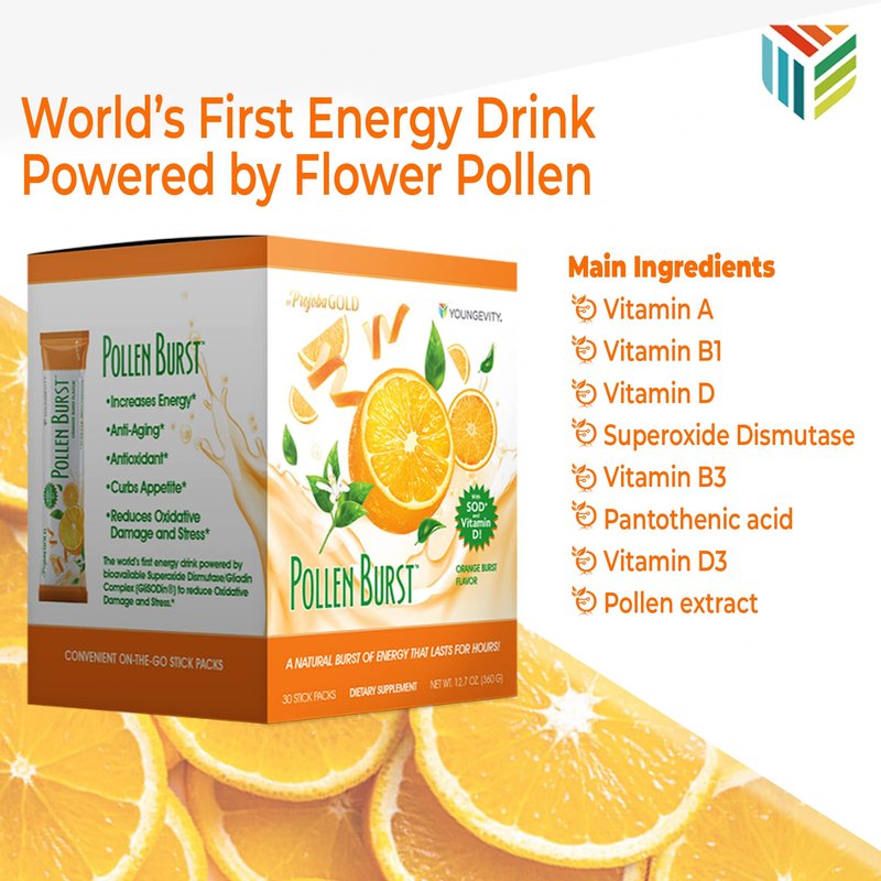 The world’s first energy drink powered by flower pollen. Featuring vitamin D and the powerful antioxidant SOD, this great-tasting natural orange-flavored drink helps the body fight damage by free radicals, toxins and other environmental stresses.