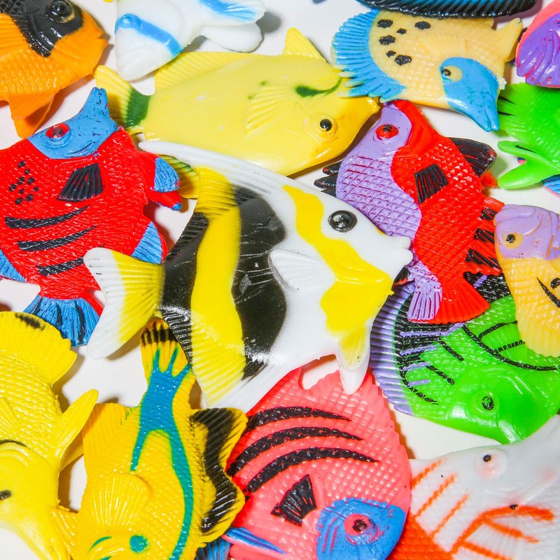 - PACKAGE: 48 colorful realistic fish in assorted colors and styles. Approximately 2 inch long.