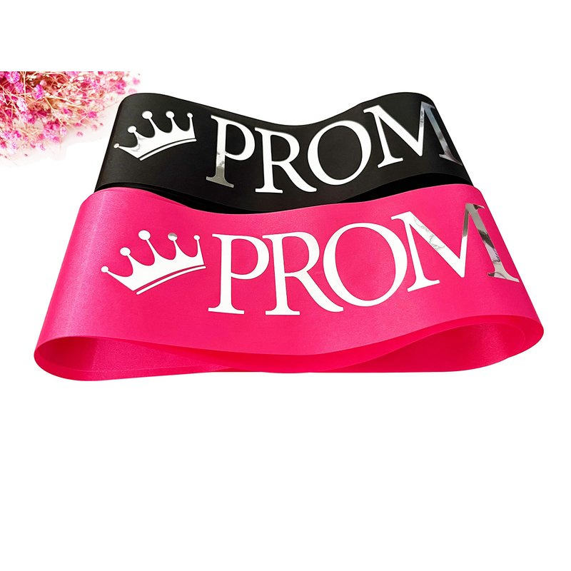 Color: hot pink "prom queen" sash, black "prom king" sash