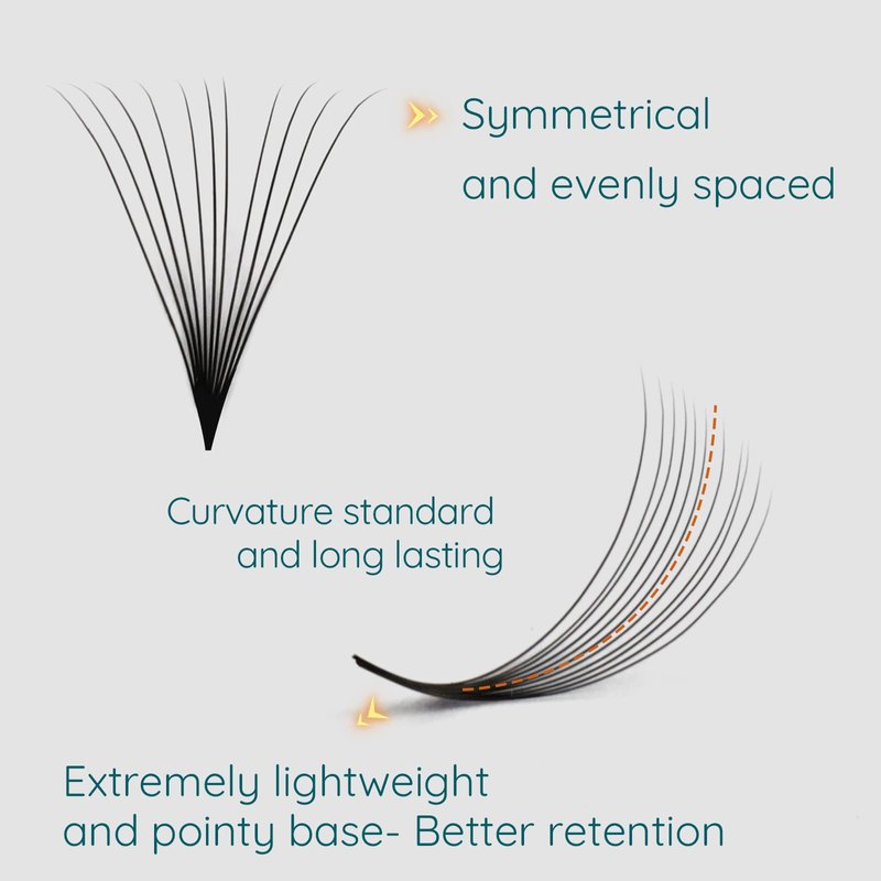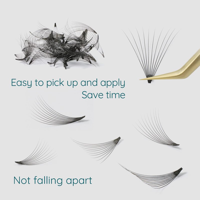 - EASY TO USE: Loose fans lash extensions are easier to use while working compared to normal tape lash trays. You can quickly pick up and apply eyelash fans with tweezers,the Promade fans are not attached to the tape, the premade fans won’t fall apart, moreover eyelashes are clean without residue.