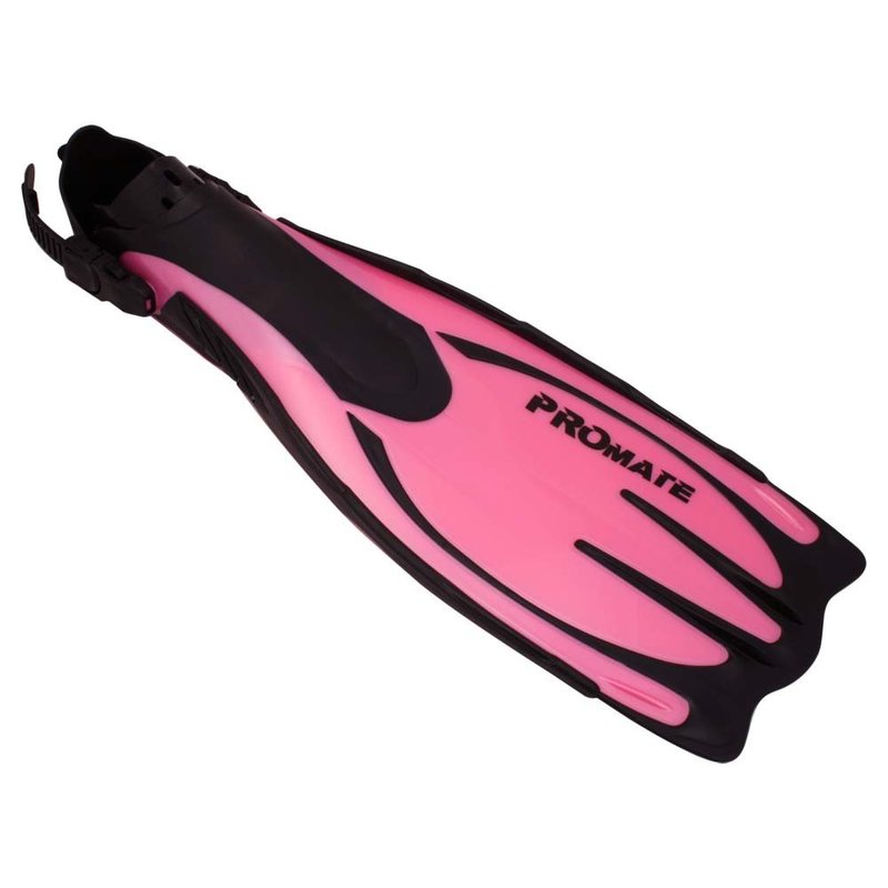 The Promate Pro Blade Fins is a precision blend of ergonomics, hydrodynamics and materials technology created for ultimate comfort, efficiency and performance; Which features Rubberized side ribs improve elasticity and stability, Channel Thrust Technology system for optimal water channeling, Maintaining optimal thrust throughout every phase of the fining stroke minimizes fatigue, Upper and lower stabilizers help transfer energy from foot pocket to the blade, Soft rubber foot pocket with ribbed insole for an improved fit and a dramatically more efficient fin stroke, Easy adjust Quick-release fin buckles to fit conveniently a wide range of boot styles. These are fantastic fins for you to use on your next water adventure .