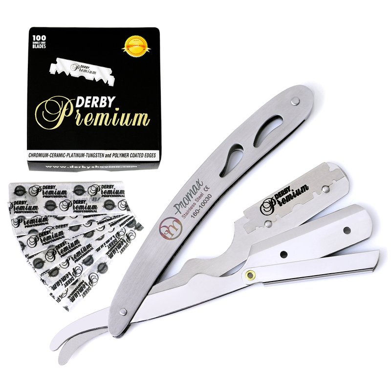 ProMax Professional Straight Edge Razor-Barber Razor with 100 Derby Blades-Close Shaving Men's Manual Shaver Safety Stainless Steel-160-10031