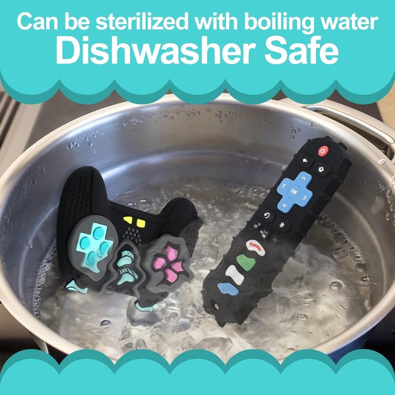 - Safe Material -- PRONY silicone TV remote control and game controller teething toys are made of 100% food grade silicone,BPA free,CPC-certified.