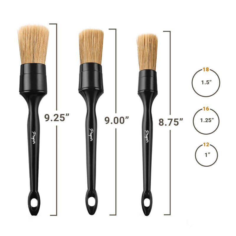 PROPER DETAILING CO. Car Detailing Brush Set, 3 Pack Natural Boars Hair Detailing Brushes, Clean Interior or Exterior, Wheels, Tires, Engine Bay, Leather Seats, Car Detailing Kit, Detail Brush