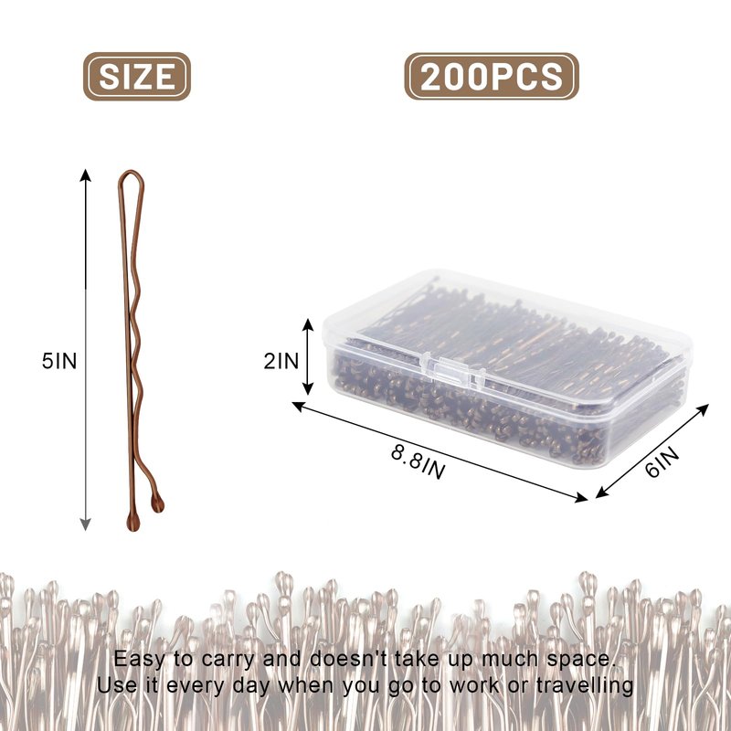 PROPOG Bobby Pins 200 Pcs, Hair Pins for Buns & Updos Hair Accessories Bobby Pin Metal Hair Pin with Storage Box Hairpins for Women and Girls (Brown)