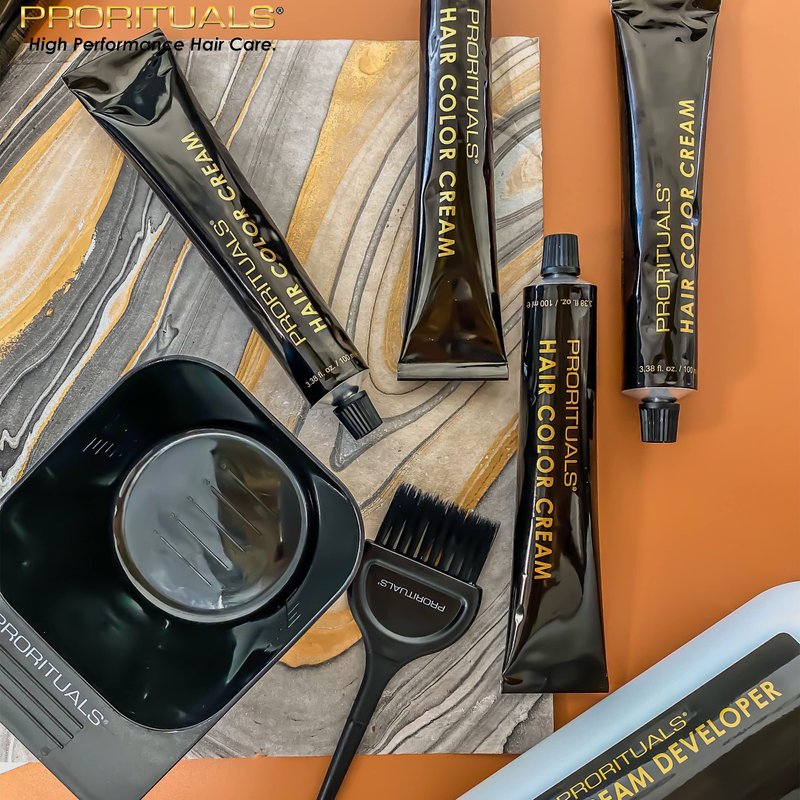 • Prorituals Hair Color Cream - Contains a double pigment system. This gives the colorist the maximum amount of available dye at every level, in every tone without losing calibration.