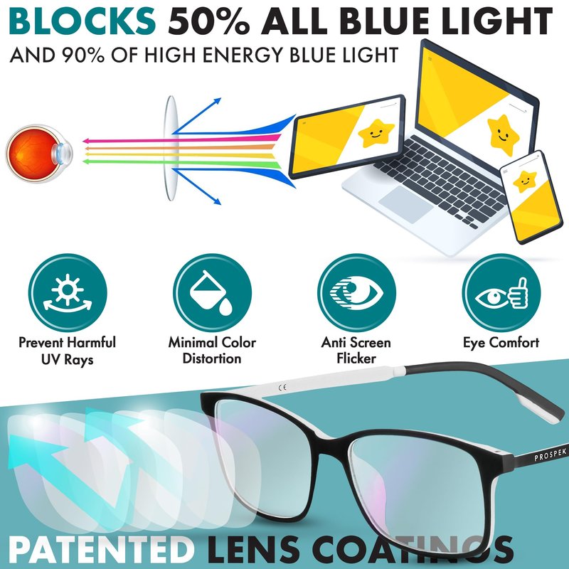 - Clarity redefined: PROSPEK LENSES excel in blocking high-energy blue light waves without a heavy yellow tint, ensuring vivid vision. Ideal blue light glasses for men and women. Use computer glasses for men and women offering minimal color distortion