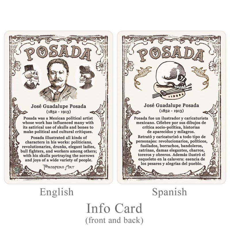 José Guadalupe Posada (1852 - 1913) was a Mexican political printmaker and engraver whose work has influenced many Latin American artists and cartoonists because of its satirical acuteness and social engagement. He used skulls, calaveras, and bones to make political and cultural critiques.