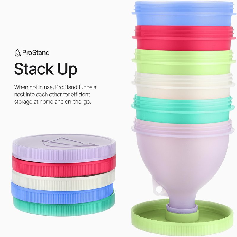 ProStand [6 Pack] - Funnels w/Stand for Filling Water Bottles with Protein Powder, Supplement Container Set to Go or Kitchen Use, Keychain for Shaker Cup V2