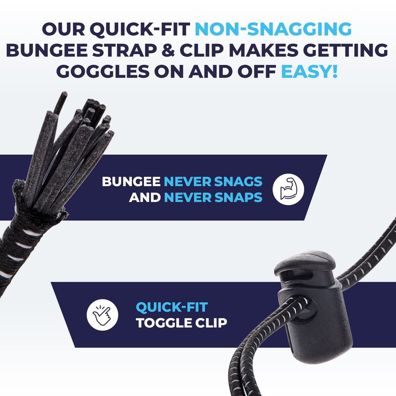 - Our unique bungee cord swimming goggle strap is super strong, extremely comfortable, and so easy to adjust & fit that you will be amazed at its superior ease of use and comfort. So much better than traditional silicone straps, our goggles will be loved by competitive, recreational, racing and triathlon swimmers alike.