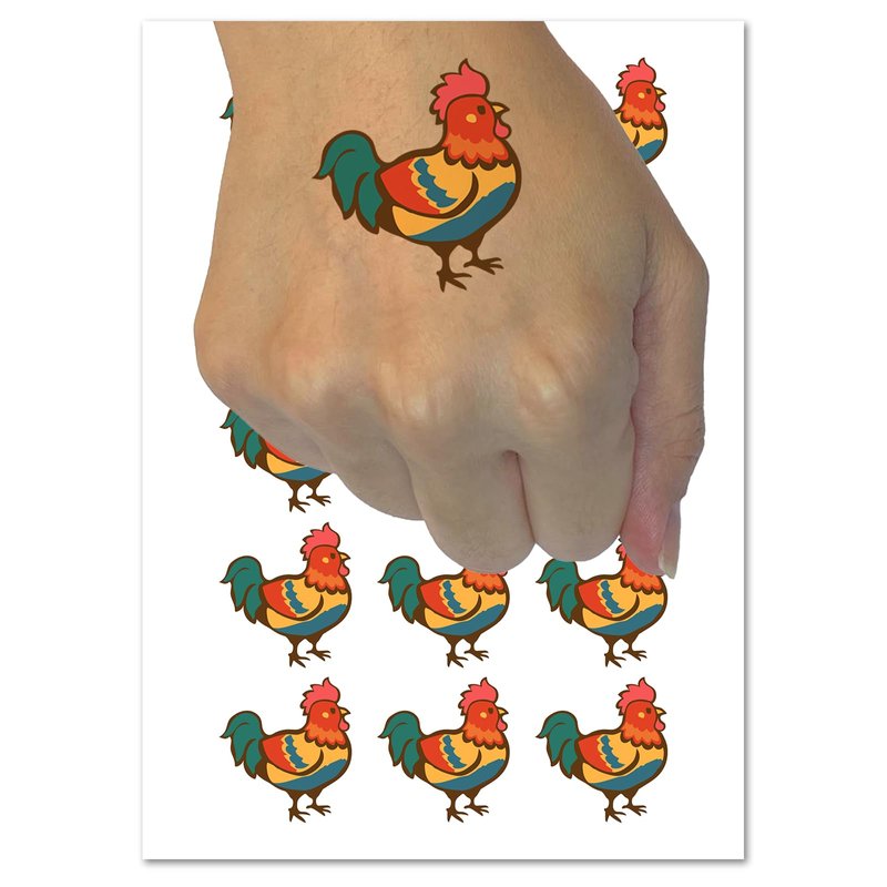 Proud Little Rooster Chicken Temporary Tattoo Water Resistant Fake Body Art Set Collection - 15 2" Tattoos (1 Sheet)