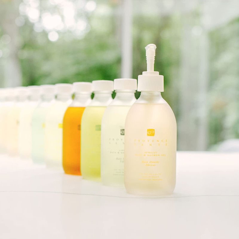 - Provence Sante Shower Gel is an exceptional product that delivers a powerful cleansing and nourishing effect on dry, rough, and sensitive skin. The formula is enriched with extra hydrating agents that provide the necessary moisture to your skin to keep it silky-soft and smooth. With each pump of our apricot shower gel you can almost envision yourself in the garden of a Turkish palace with the sweet smell of apricot wafting through the warm air.