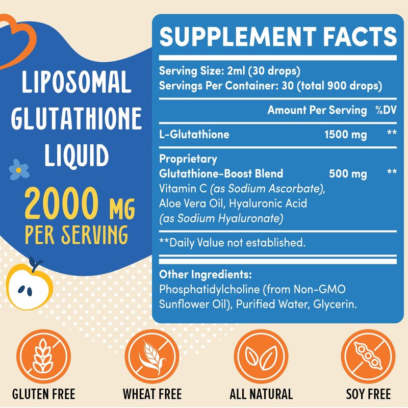 Prunucis 2000MG Liposomal Glutathione Liquid, 98% Absorption, Glutathione Liquid Supplement, Active Form L- Glutathione, Powerful Antioxidant Complex for Immune System, Aging Defense, Detox, 2 FL.OZ
