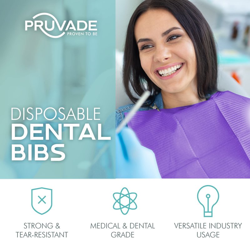 Reduce cleanup times, improve sanitary conditions, and eliminate the need to re-sanitize after a procedure with the help of Pruvade disposable bibs.