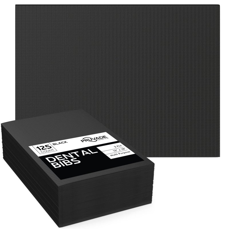 Pruvade Dental Bibs - 125 Pack Adult Disposable Bibs for Dentist, Eating, Tattooing - 13" x 18" - 3-Ply Waterproof Medical Sheets for Piercing, Tattoo Table Station, Nail Techs, Patient Hygiene- Black