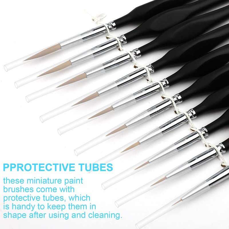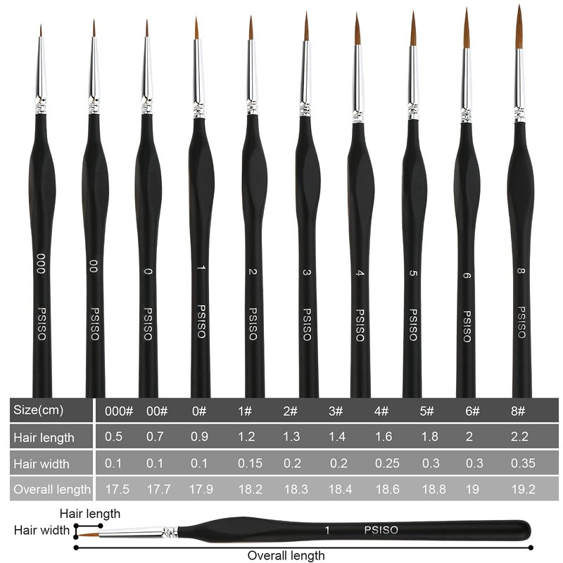 - Perfect Miniature Paint Brushes Kit: The detail paint brush has 10 assorted point tips with different thickness, ensure that you always have just the right paint brush for the job. This set of detailing brushes offers the perfect small paint brush for each phase of all your artistic painting projects, including 000/00/0/1/2/3/4/5/6/8.