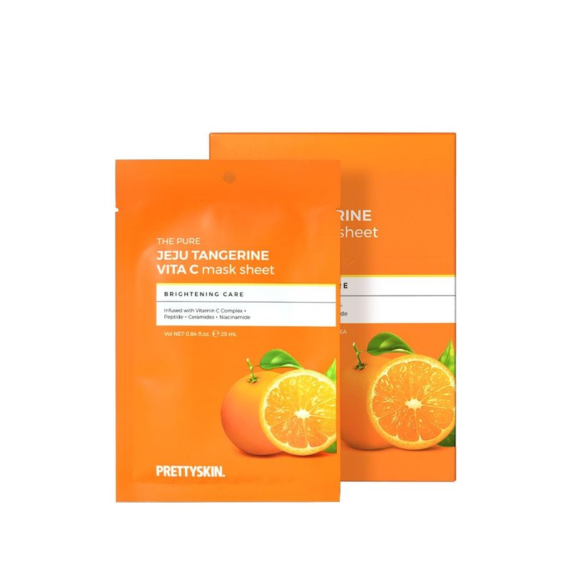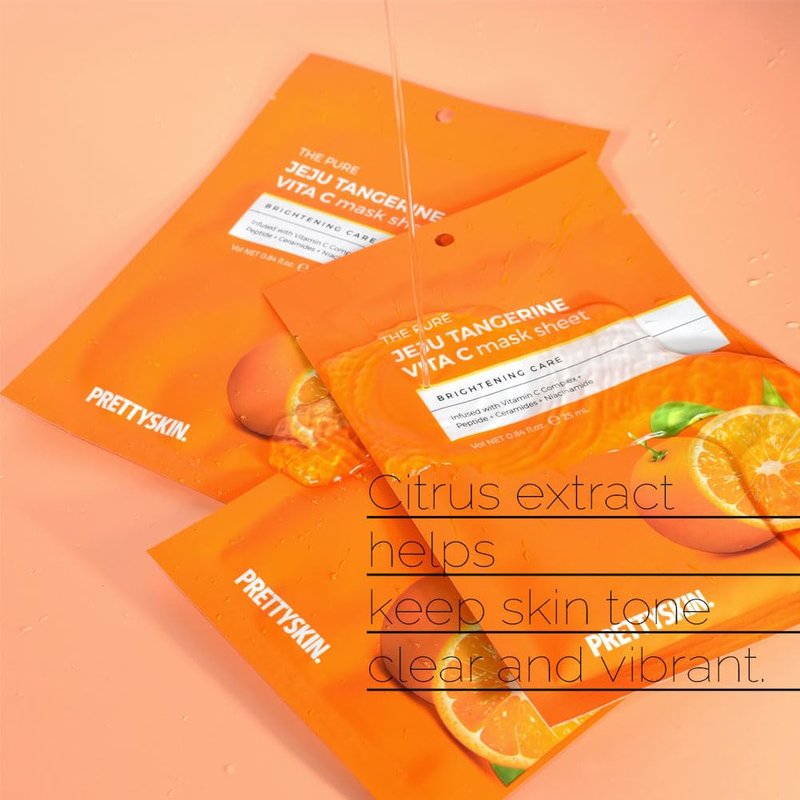 Enhance your skincare routine with PS.PRETTYSKIN Jeju Tangerine Vitamin C Facial Mask Sheet, a top choice for those seeking vibrant, skin with the benefits of Korean skincare expertise.