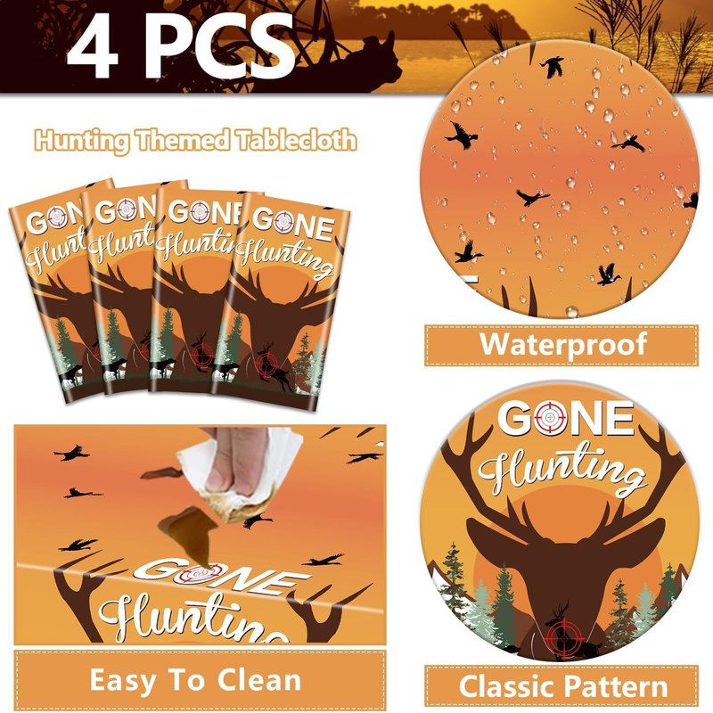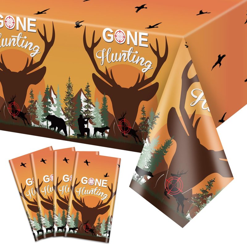 PTECDROTS 4Pcs Hunting Tablecloths, Rectangular Hunting Birthday Decorations Table Covers, Disposable Hunting Table Decorations for Kids Hunting Deer Birthday Party Supplies, 51 x 86 Inch
