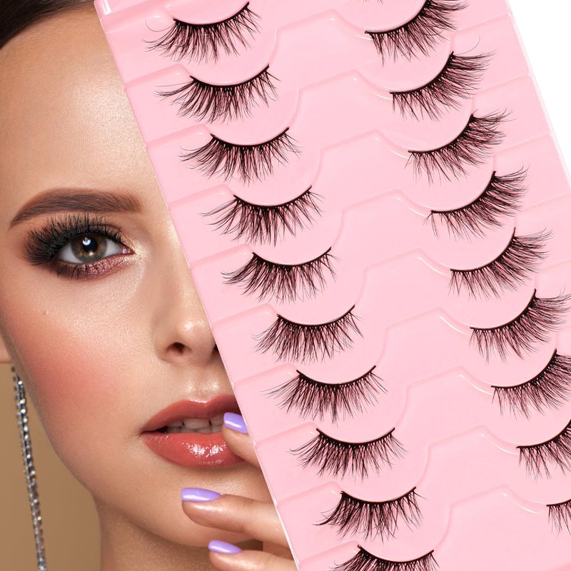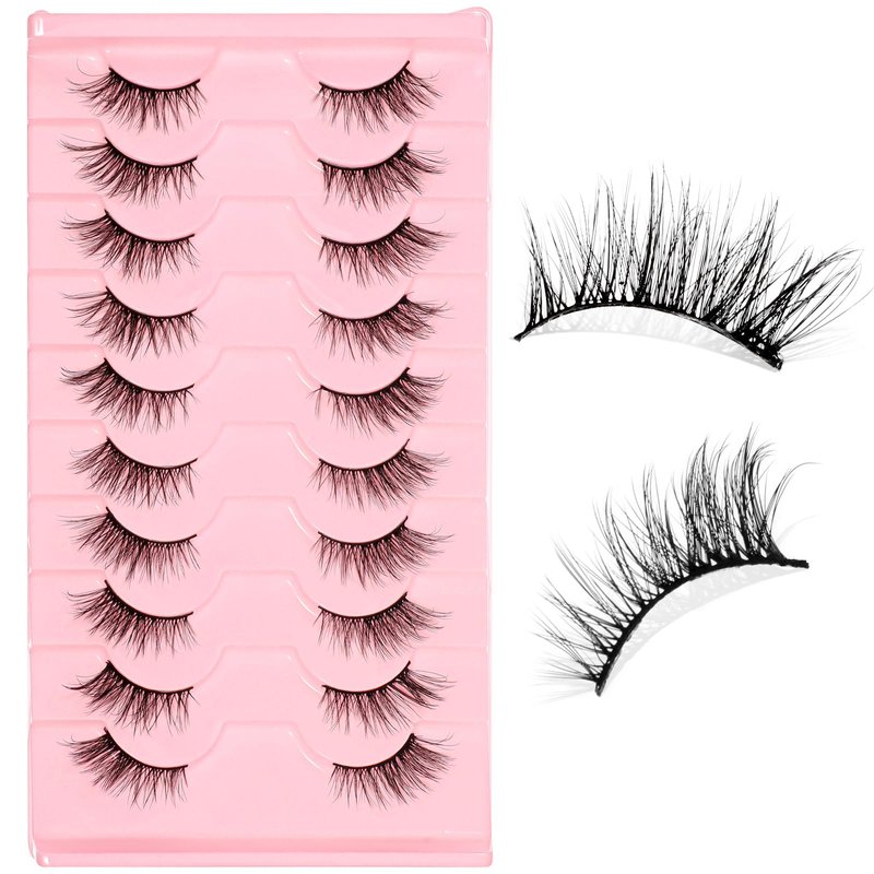 10 Pairs Natural Half False Lashes Self Adhesive Natural Look Cat Eye Lashes Eyelash Extension Kit 3D Fluffy Manga Wispy Long Fake Lash Clusters Supplies for Women Girls Eye Make Up
