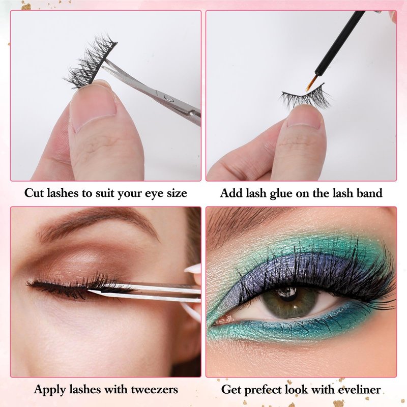 - 【Easy to Use】Wispy false eyelashes are also very simple to use. You only need to clip the roots of false eyelashes with tweezers, and then use a small amount of glue to stick them where you want
