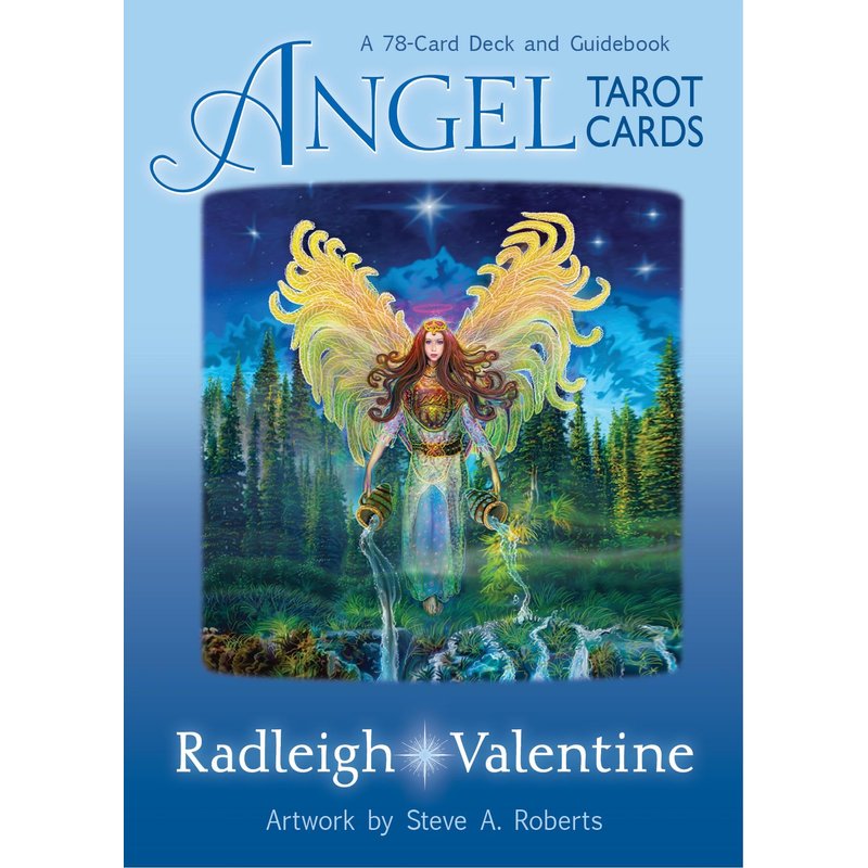 INCLUDES THE LARGE BOOK! This is a TWO item listing. Tarot has long been revered for giving detailed and accurate forecasts. Doreen Virtue, who does not want to figure in the cover anymore but it's exactly the same text and cards, and Radleigh Valentine have created the first deck of tarot cards that is 100 percent gentle, safe and trustworthy! All of the words in this deck, as well as the artwork by Steve A. Roberts, are positive and beautiful, while still retaining the magical effectiveness of traditional tarot. The accompanying guidebook explains the general meaning of each card and walks you through the steps of giving an accurate reading for yourself and others. Rich with symbolism and imagery - including angels, archangels, unicorns, fairies, and mermaids - the Angel Tarot Cardswill provide you with inspiring guidance on your life journey! Tarot has long been revered for giving detailed and accurate forecasts. The accompanying guidebook walks you through the steps of giving an accurate reading for yourself or others and explains the general meaning of each card. Rich with symbolism and imagery—including angels, archangels, unicorns, fairies, and mermaids—the Angel Tarot Cards and the FULL SIZE BOOK will provide you with inspiring guidance on your life journey! Previously published by Doreen Virtue and Radleigh Valentine.