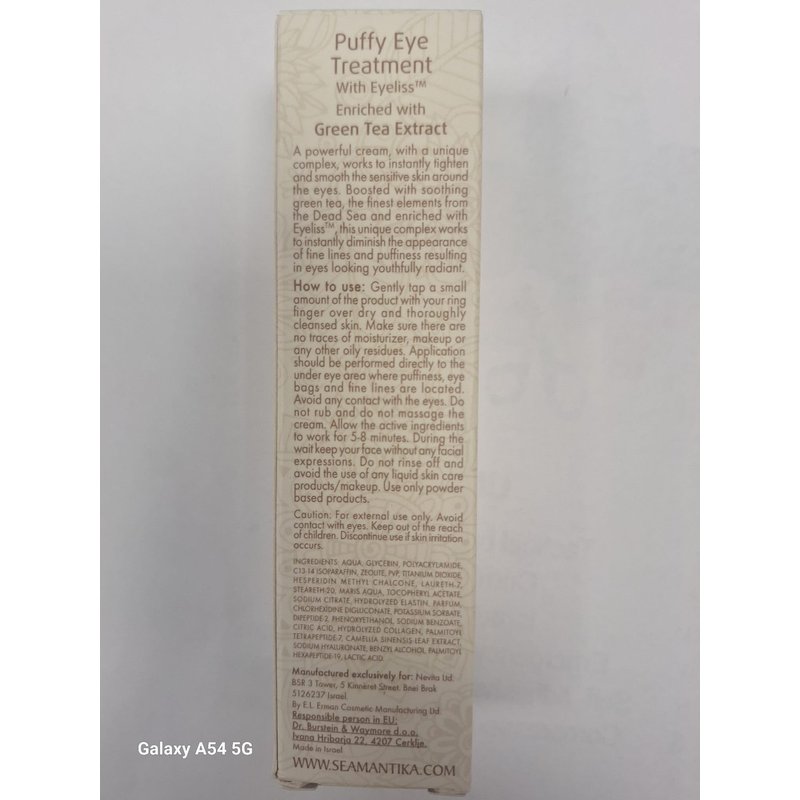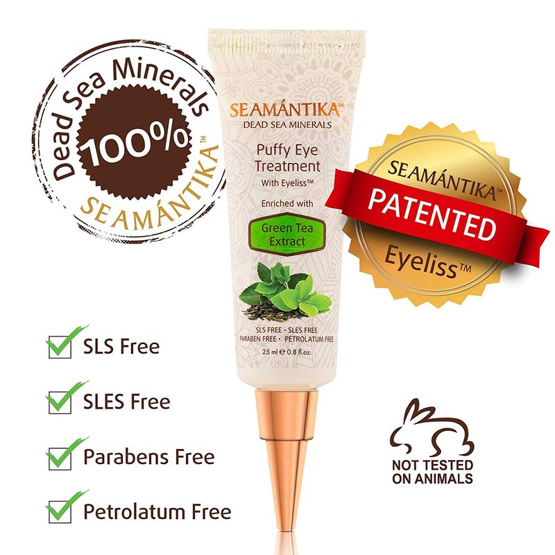 Puffy Eye Treatment Instant results – Naturally Eliminate Wrinkles, Puffiness, Dark Circle and Bags in Minutes – Hydrating Eye Cream w/ Green Tea Extract, Dead Sea Minerals by SEAMANTIKA – .8 fl.oz.