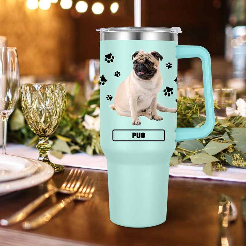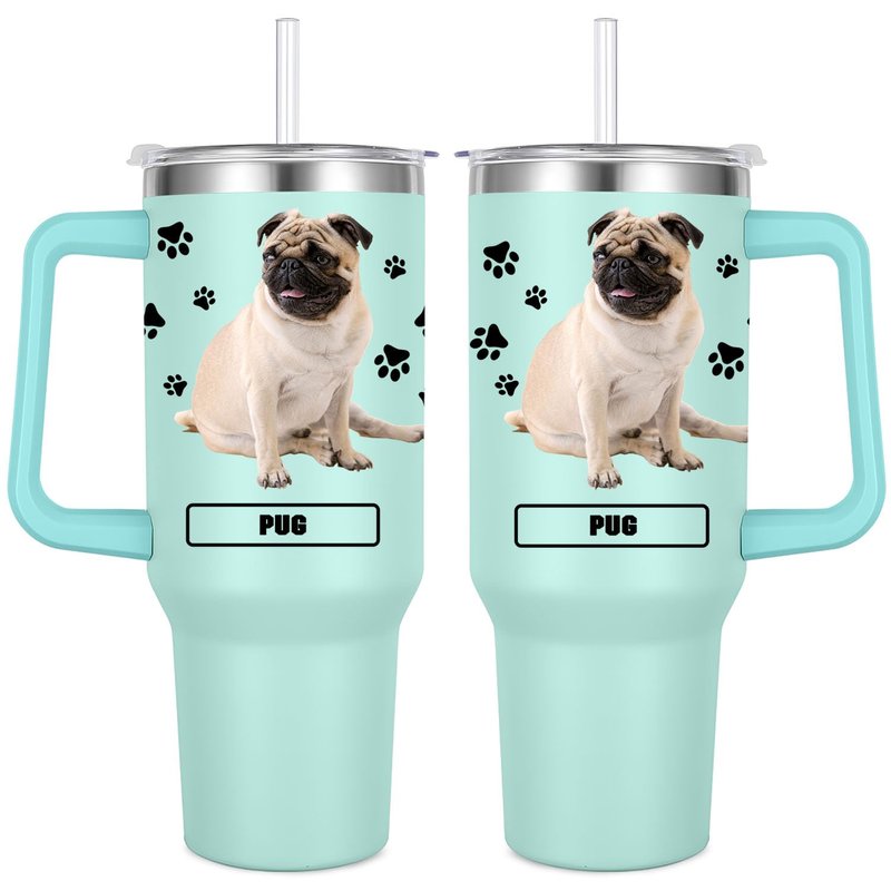 Pug Gift for Dog Owner,40oz Pug Tumbler with Handle Insulated Reusable Stainless Steel Travel Water Bottle (Color 2)