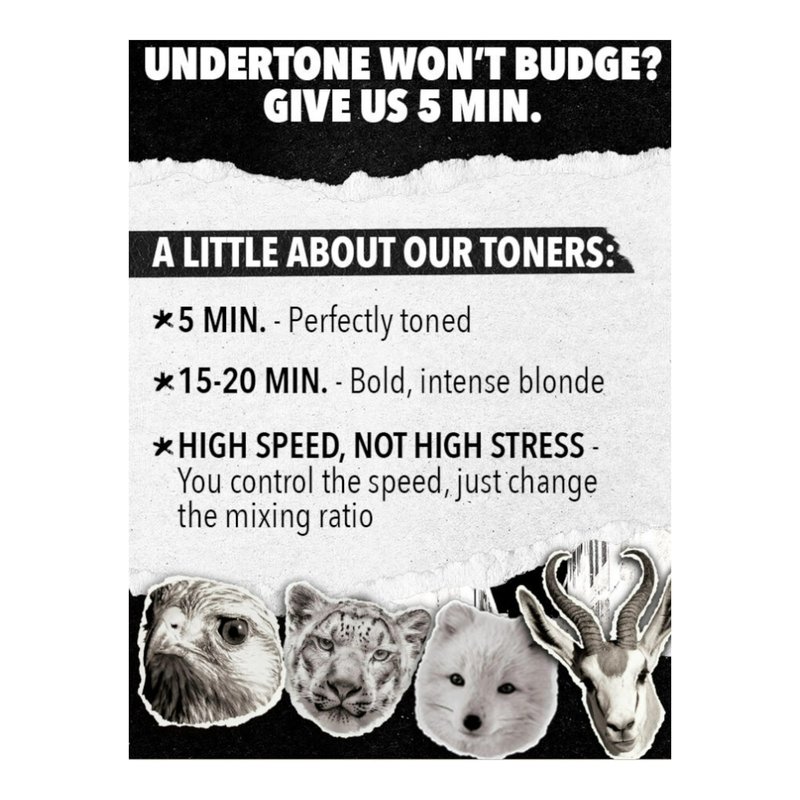Tones the hair beautifully in just 5 minutes, and provides a conditioning shine, increases elasticity, restores moisture and helps protect the hair from environmental damage. Silver toner is true to tone, and is vegan and cruelty-free. In a non-metallic bowl, mix toner to developer in 1:2 ratio using 6 or 10 volume developer. Apply mixture to damp or dry hair. Results are achieved in 5 minutes or less. For deeper pigment deposit, leave mixture in hair for up to 15 minutes. To minimize color deposit, change the toner to developer ratio to 1:3 or 1:4. Shampoo and rinse thoroughly.