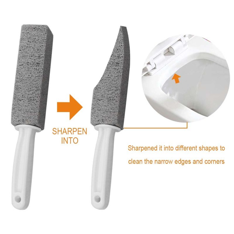 - Notice: 1. Please wet the grey rubbing pumice stone before using it, It will have more powerful cleaning function. 2. You can sharp the pumice stone with some tools to clean the narrow edges and corners in the toilet bowl or other fixtures.