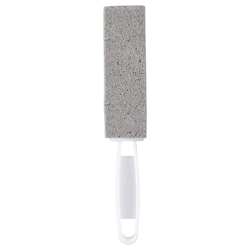 - NOW WITH A CONVENIENT HANDLE: A professional janitorial aid for generations. No more gloves. A pumice rubbing stone that rids toilets of rust and lime buildup when chemicals quit. Won’t harm porcelain bowls. Reusable, shapes to surfaces
