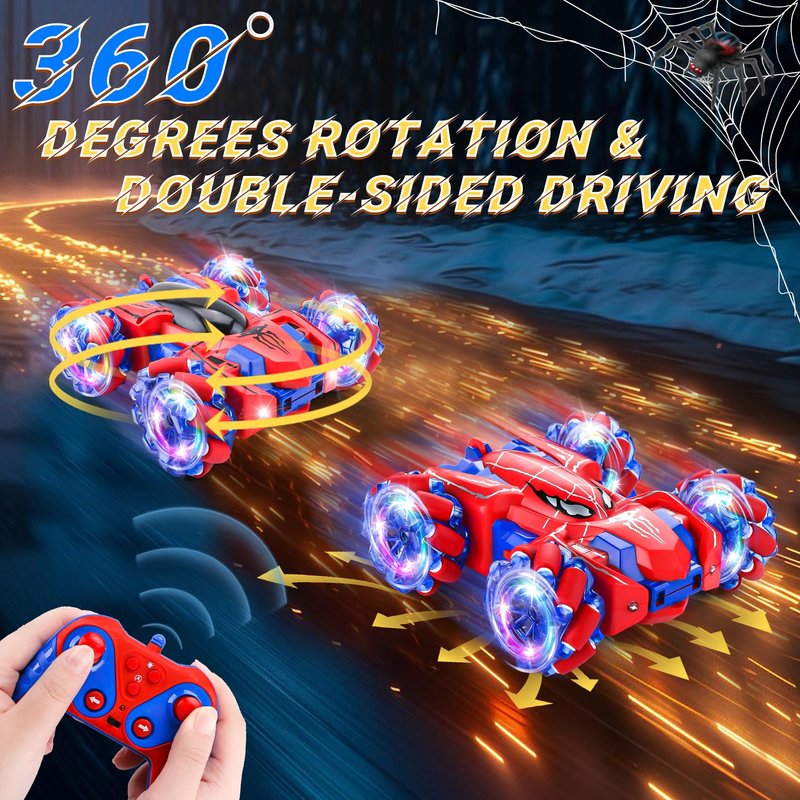 - Ideal Spider Toys for Kids: This rc stunt car can explore the limits of kids' imagination, promote communication among children. A perfect gift for birthdays, Spider themed party favors, Children's Day, Christmas. It is the most popular spider toys for boys 4-6 5-7 8-13