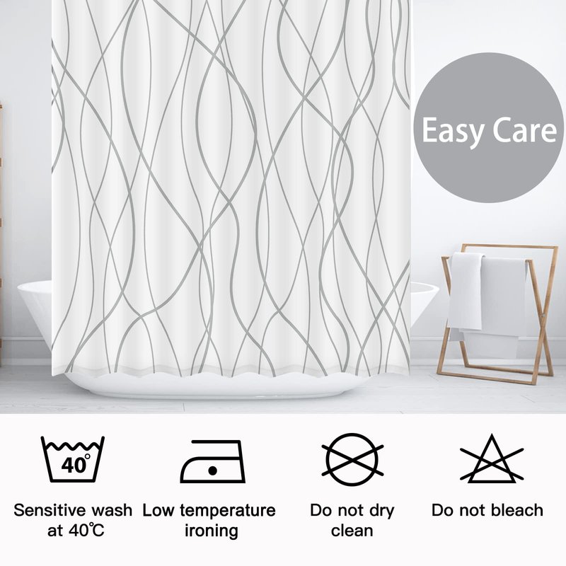 - ★ EASY CARE -- Machine washable shower curtain with plastic split ring allows easy installation and removal for cleaning. The rustproof grommets ensure you easily change the shower curtain rings as you like.Machine Washable in cold water, gentle cycle.