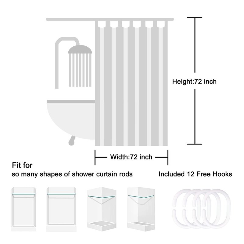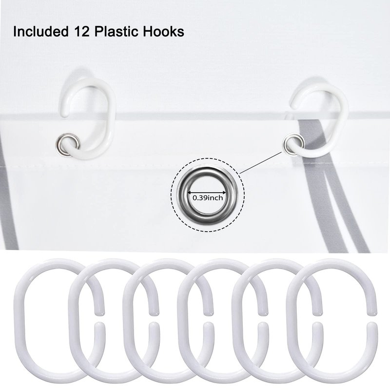 - ★20G Eco-Friendly Material -- This shower curtain set includes 12 HOOKS for easy installation. The bottom of the shower curtain is designed with a 20g weighted hem, making it less likely to be lifted by the wind. The eco-friendly material in the HEM won't rust the shower curtain and make it unsightly.