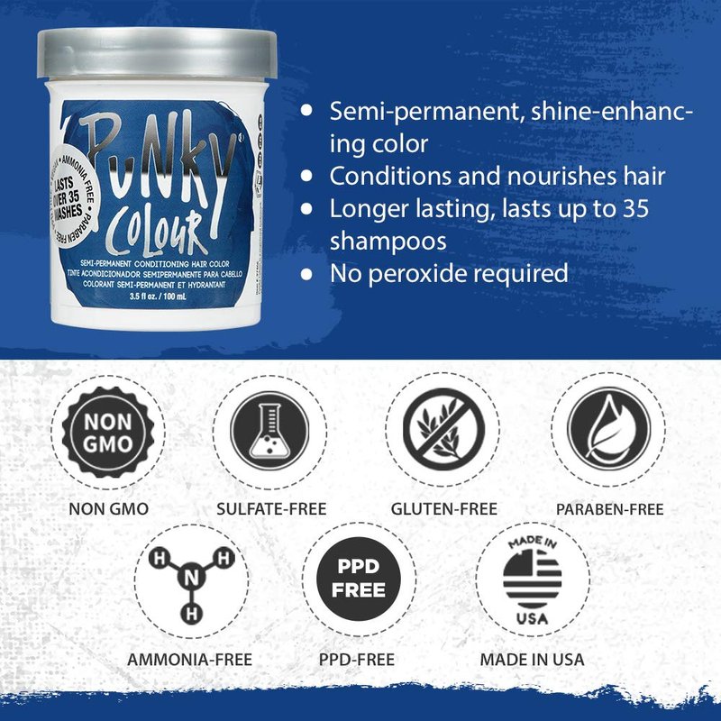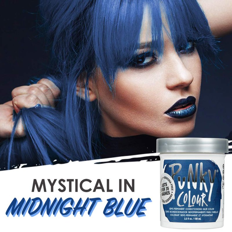 - Semi Permanent Conditioning Hair Dye: Turn up the magic in your gorgeous night-sky Punky Colour Midnight Blue hair dye! Stand out of the crowd with a mysterious, extra bold look! Transform and condition hair for a soft & silky brand new look with zero commitments. This should be your next hair goal!