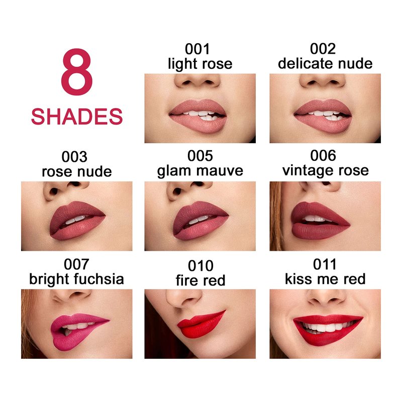 - LUXURIOUS AND SILKY TEXTURE. The velvety texture of our expertly crafted formula easily glides over the lips to provide definition with its highly concentrated pigments. Get full, pillow-soft lips with our lipstick.
