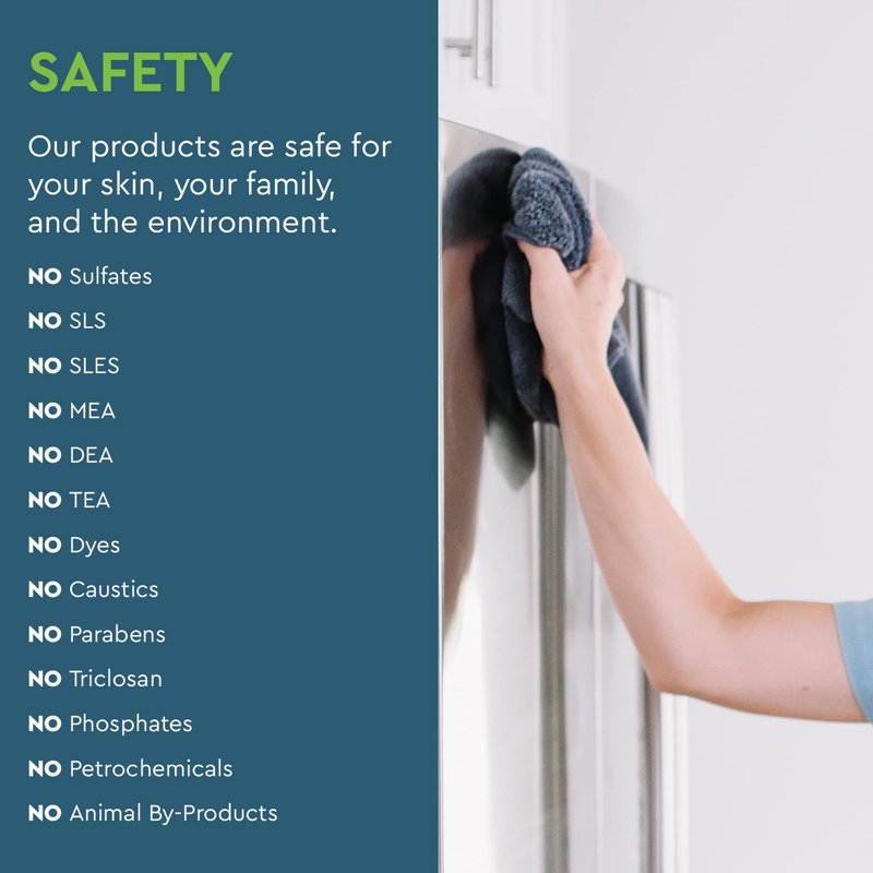 - 100% SATISFACTION GUARANTEED: Safe for Children, Pets, All Household Surfaces; Natural, non-toxic, hypoallergenic, vegan, gluten-free, biodegradable; Certified Cruelty-Free - Never Tested on Animals; Made in the USA