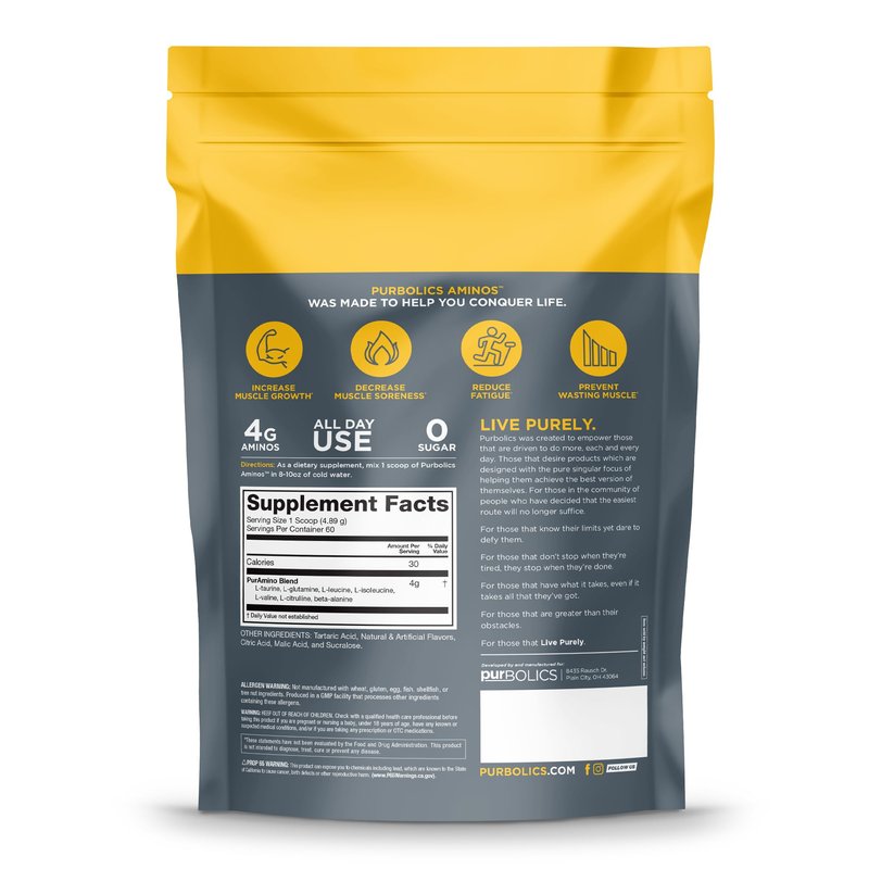 - PURBOLICS: We were sick of drinking chalky flavored aminos in our shaker cup, so we decided to create a great tasting mix that dissolves completely!