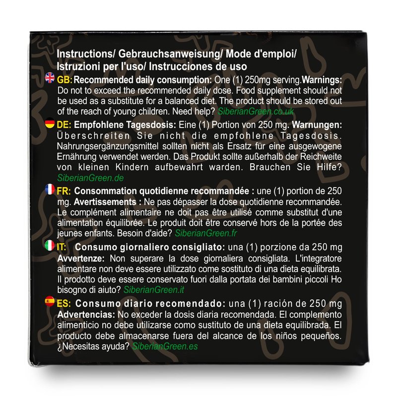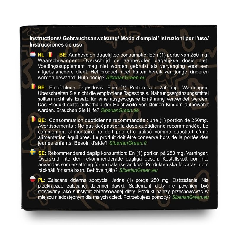 Manufactured in Siberia, Altai Republic Golden Mountains by "Siberian Green" Shilajit contains 100% pure shilajit resin harvested high in the Altai, Siberia mountains. Golden Mountains of Altai is a UNESCO World Heritage Site, One of the most unique and biodiverse regions in Central Siberia. Thank you for your support of Altaisky Biosphere Nature Preserve, one of the sites of Golden Mountains of Altai!