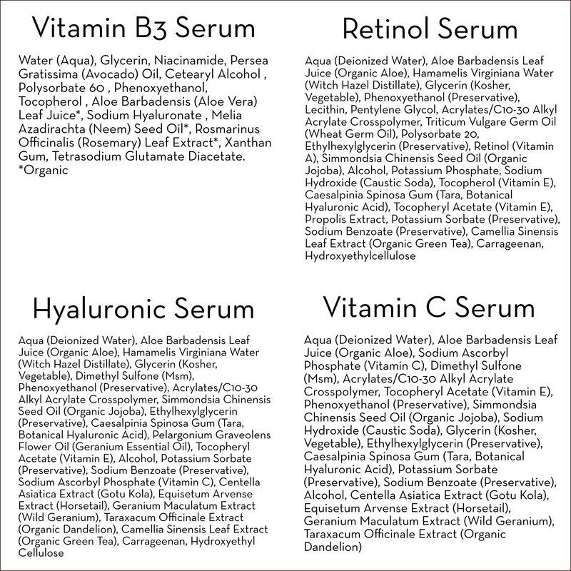 Pure Body Naturals Facial Serum - Hyaluronic Acid Serum, Retinol Serum, Vitamin C Serum, and Vitamin B3 (Niacinamide) Serum - A Perfect Serum Gift Set for Women of All Ages