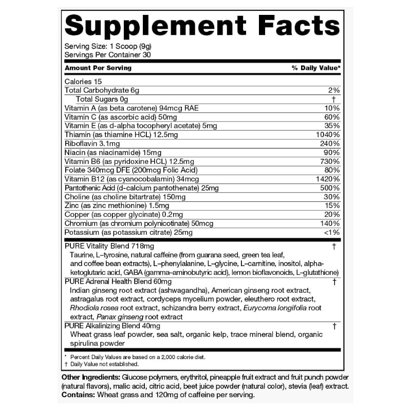 PURE | Energy | 9.5 oz Tub of Island Splash | Natural Energy Drink Powder for Water | Vitamin C, B, A, E, Zinc | Natural Caffeine from Coffee Bean & Green Tea Leaf | Ashwagandha for Adrenal Health