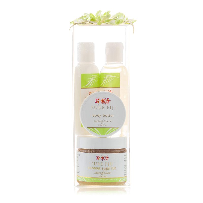 Pure Fiji Spa Gifts for Women and Man - Body Gift Box Include: Sugar Scrub, Bath and Body Oil, Body Butter and Body Lotion, Scent Starfruit