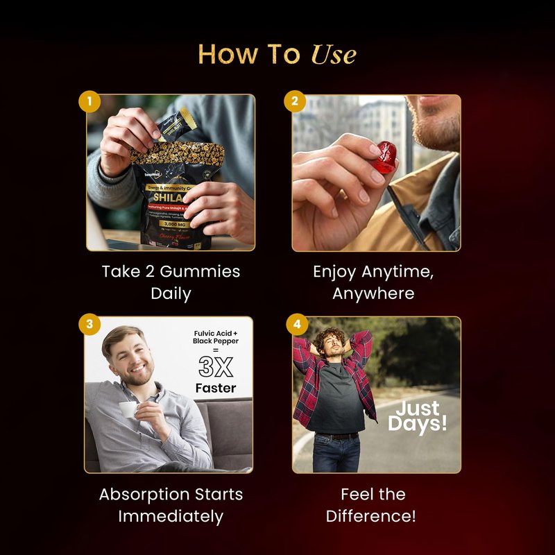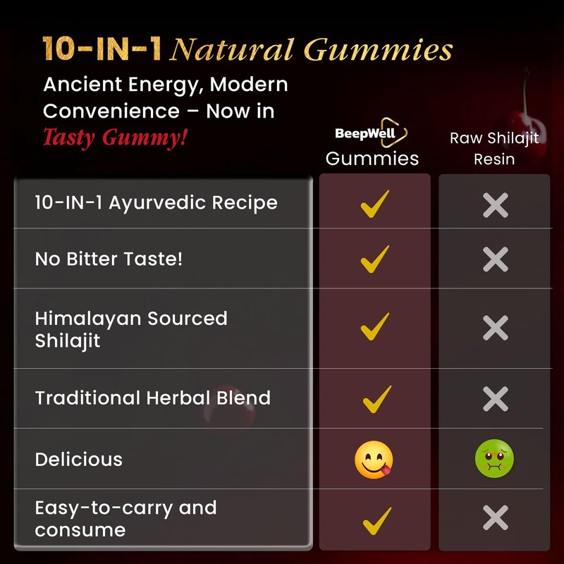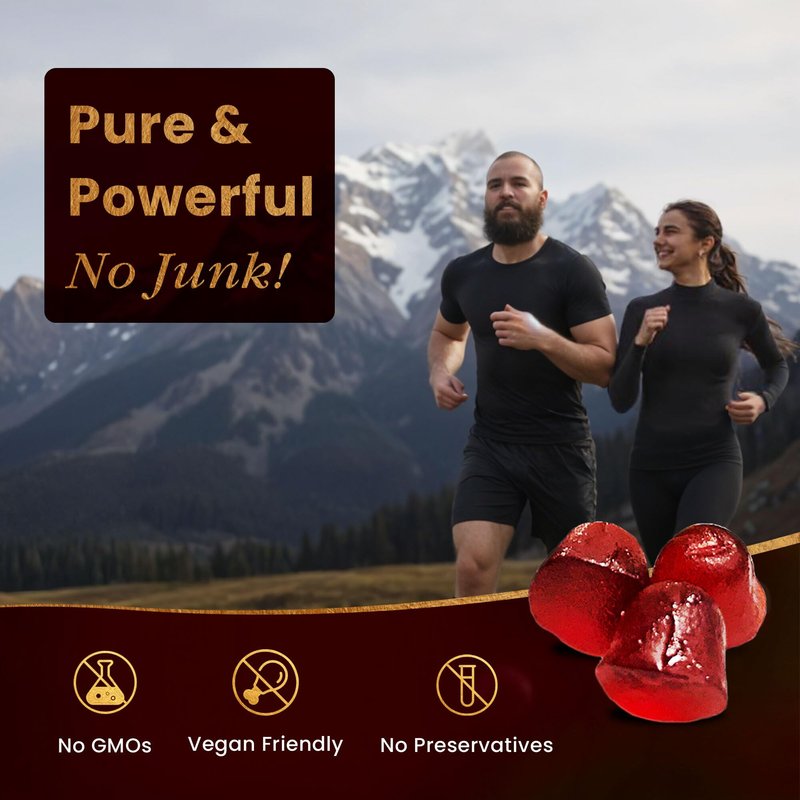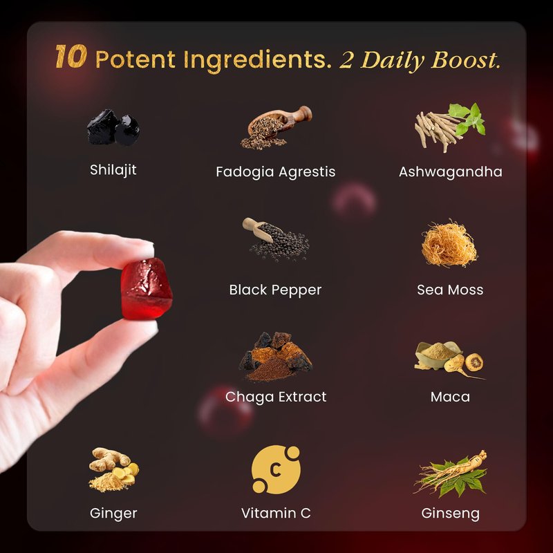Pure Himalayan Shilajit Gummies Gold Grade Shilajit Riched with Ashwagandha Fulvic Acid & 85+ Trace Minerals - No Added Sugar - Individually Wrapped - Shilajit Gummies for Men & Women - 60 Gummy