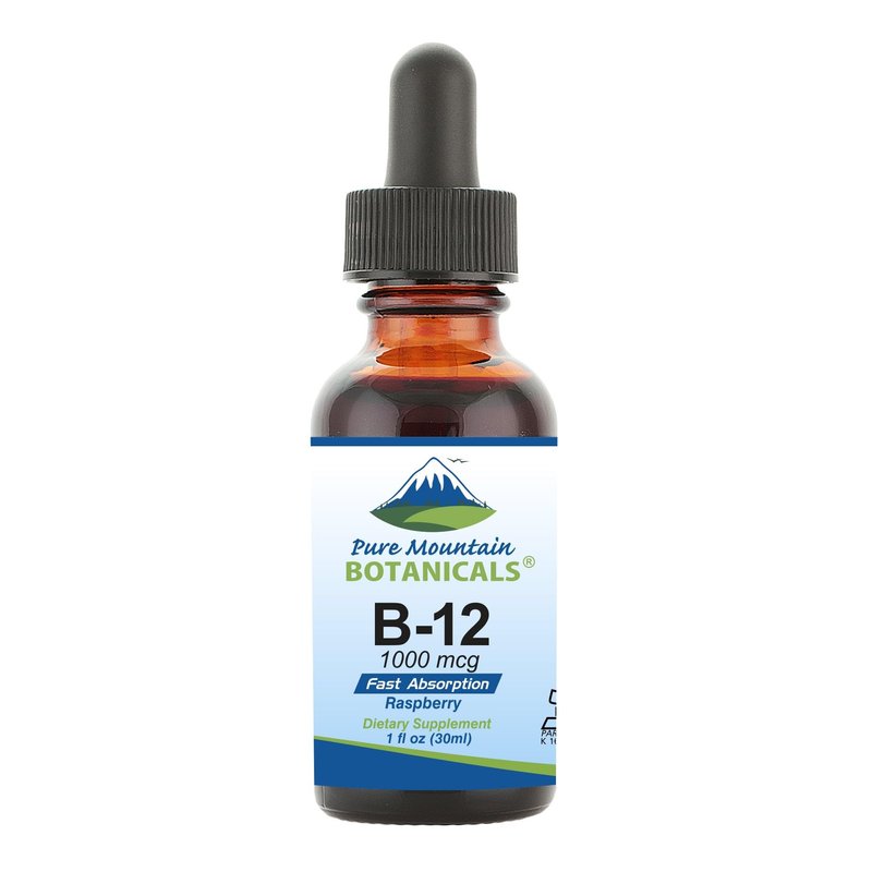 Pure Mountain Botanicals B12 Liquid | 1,000 mcg Vitamin B12 Supplement to Support Nerves, Immune Health, Energy, and Cognitive Function* - Kosher B12 Drops with Natural Berry Flavor, 1oz Bottle