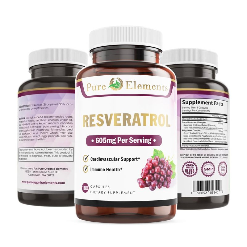 Pure Organic Elements Resveratrol 1450mg Extra Strength Formula to Promote Better Skin and Immunity with Green Tea Extract,Grape Seed Extract,Red Wine Extract and Others 90 Days Supply
