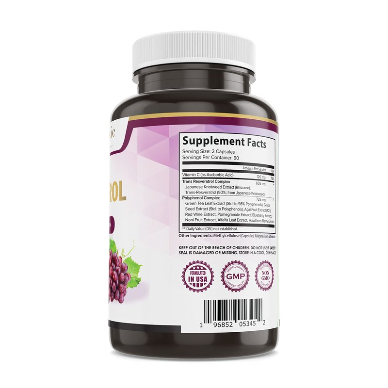 - SYNERGISTIC BLEND: This supplement also contains Green Tea Extract, Grape Seed Extract, and Red Wine Extract, which work together to provide a synergistic effect and enhance the overall health benefits of the supplement.
