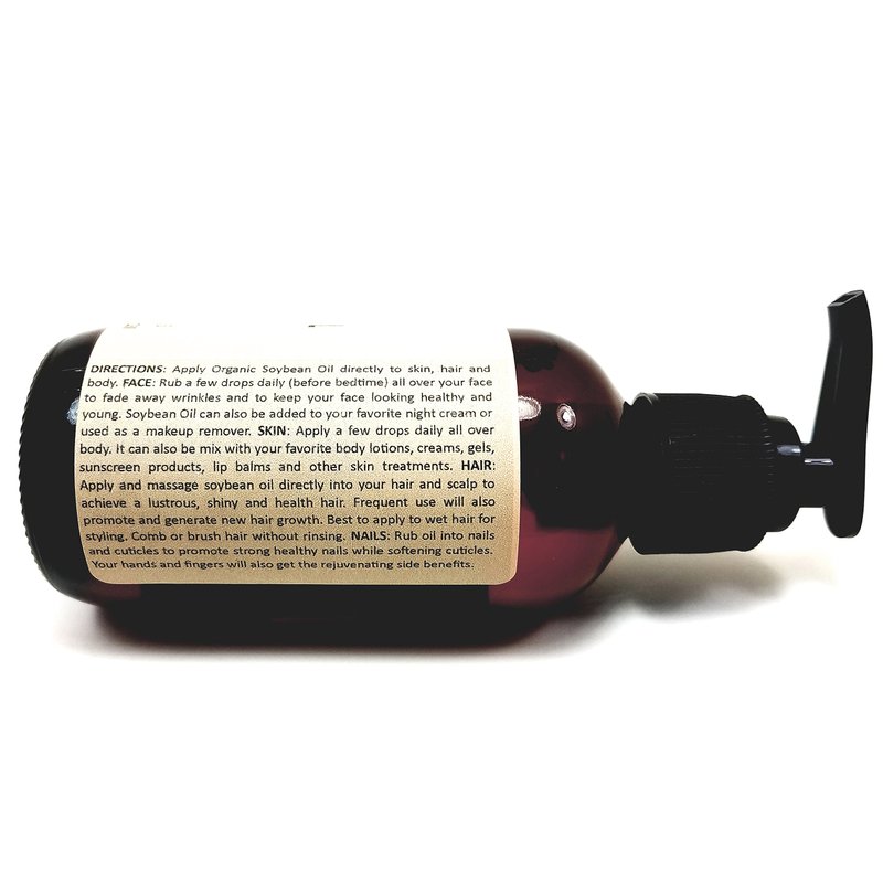 Pure Organic Soybean Oil for Face, Hair, Body and Nails. Cold Pressed,100% Natural, No Additives. A Proven Natural Moisturizer. 4oz Amber Glass Pump Bottle