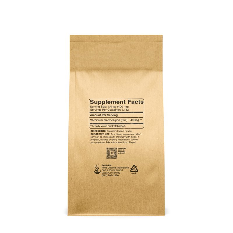 - Pure Original Ingredients Cranberry Extract Powder is made from a single ingredient, providing a pure undiluted supplement