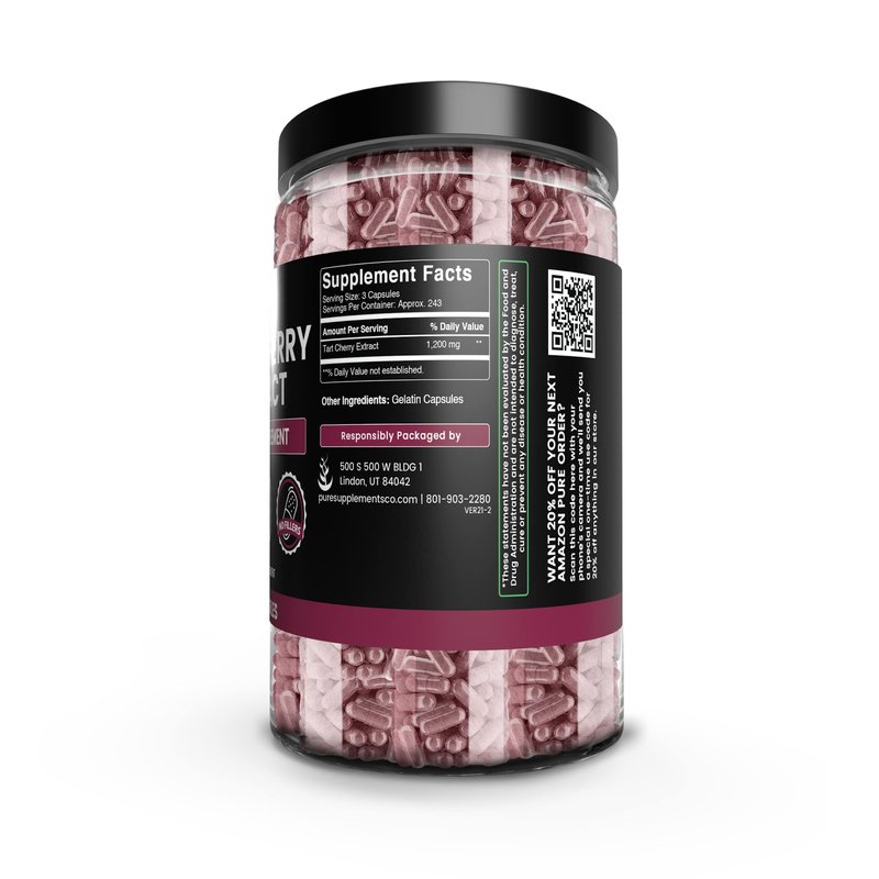 - Tart Cherry Extract Capsules are filled with a single ingredient, providing a pure undiluted supplement