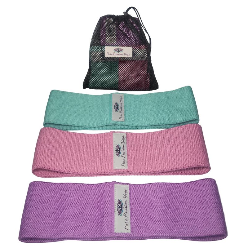 Pure Passion Yoga Fabric Resistance Band Set | 3 Tension Bands with Carrying Bag | Fabric Resistance Bands for HIPS & Glutes Workouts