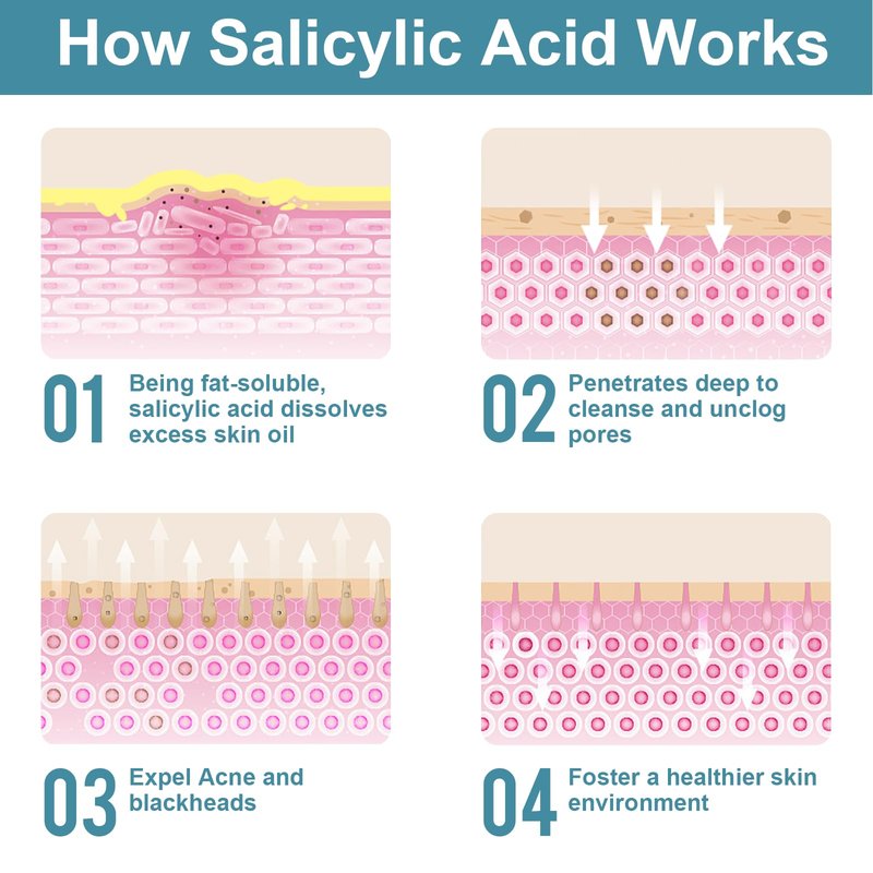 - Multifunctional: Salicylic acid help manage several skin problems, improve skin texture and tone, and promote a more radiant complexion. Do not to apply on the skin which has a problem like broken, red, swollen, and irritated.